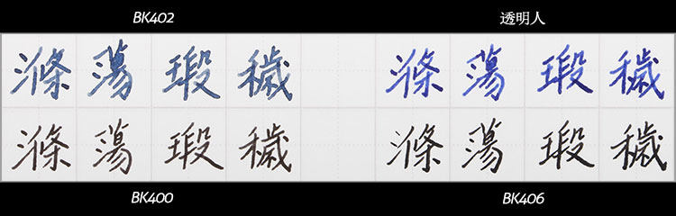 很明顯,BK-402是其中筆劃最粗的一個,而BK-406是最細的。