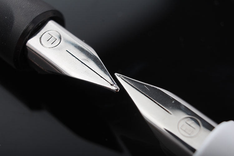 在筆尖上,BK-402標明了“F”,而BK-406寫的是“EF(Extra Fine)”。所以BK-406就是施耐德為了提價,而把EF尖的BK-402換了個筆蓋來賣高價的馬甲型號,對不對對不對!
