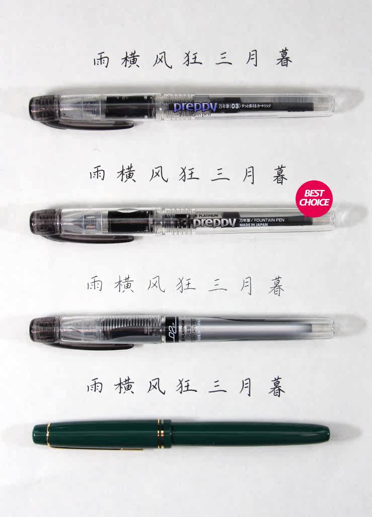 PPQ-200和PPQ-200-2是名字和外形都類似,但是寫起來完全不同的兩支筆。我們找來了同屬Preppy系列的PPQ-300,以及價格類似的百樂78GM,進行了一次對比: