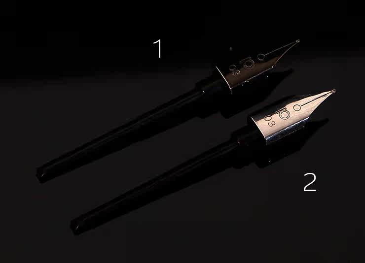 首先看筆尖,銥金粒的形狀完全不同,另外表層的電鍍工藝被取消掉了,鋼尖直接裸露。這是一個不影響性能前提下的,節約成本的考量。